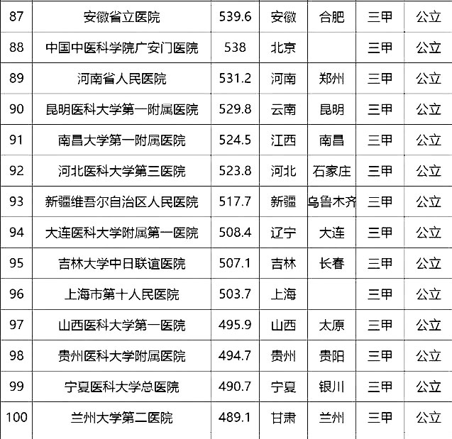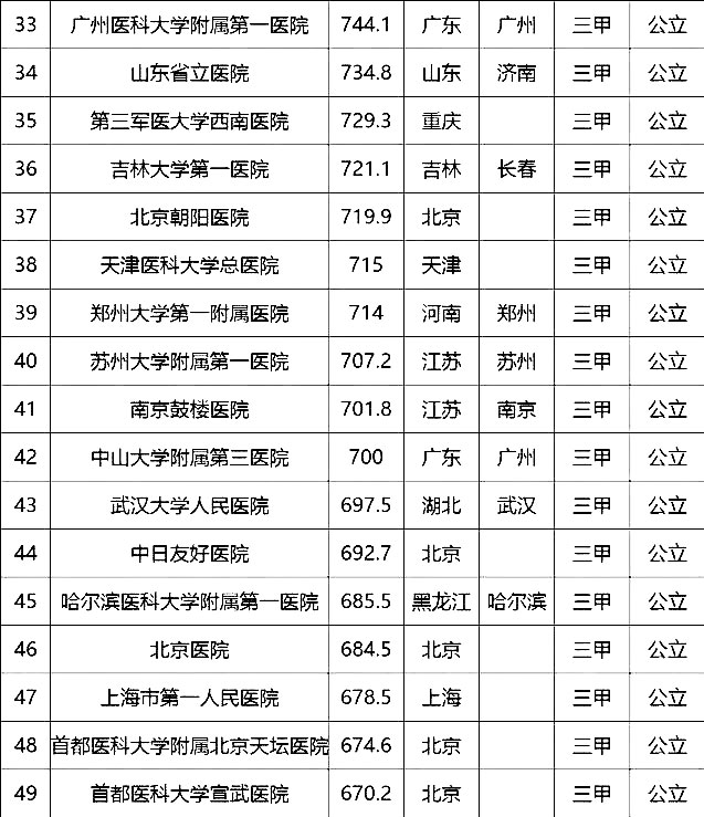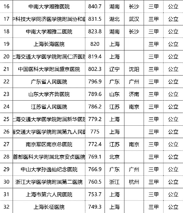 “100強(qiáng)”榜單中,入圍最多的三個(gè)省市分別是北京(16家醫(yī)院)、上海(13家醫(yī)院)、廣東(9家)。“100強(qiáng)”共覆蓋32個(gè)城市,包括4個(gè)直轄市(36家醫(yī)院)、23個(gè)省會(huì)城市(59家醫(yī)院)、5個(gè)地級(jí)市(5家醫(yī)院)。總體看,城市的醫(yī)院平均得分和上榜機(jī)構(gòu)數(shù)有一定的相關(guān)性,上榜機(jī)構(gòu)數(shù)多的城市一般得分均值較高,說(shuō)明這些城市醫(yī)院整體實(shí)力較高。